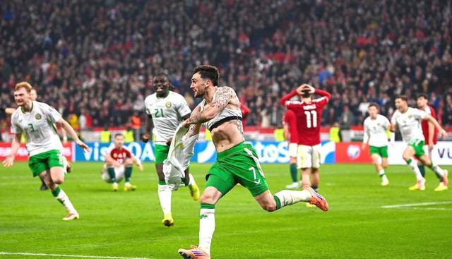 客场挑战匈牙利队,爱尔兰队两度落后,帕罗特先是在第15分钟点球破门扳平,第80分钟挑射得分再次追平。
